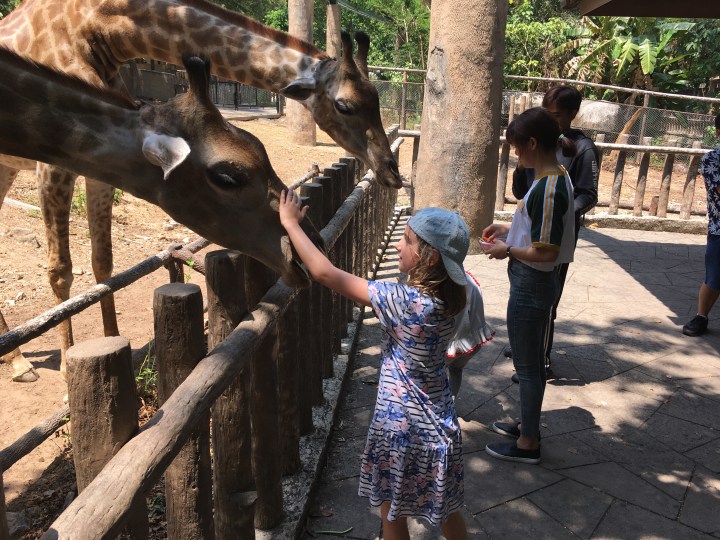 Die Zooanlage war sehr gross, die Tiergehege darin aber im Verhältnis eher klein. So hatte man zwischen den Gehegen weite Strecken zu laufen. Es hatte zwar Busse, die einem zum nächsten Standort fuhren, trotzdem musste man entweder viel zu Fuss gehen oder oft warten. Beides bei 40 Grad eher unangenehm. Wir staunten über unsere Mädels, die Hitze und Wege gut wegsteckten. Nur Gioia hatte regelmässig müde Beine.