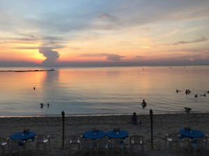 Nach einem späten Lunch ging es ab ins Meer. Josephine und Annina erkundigten die Bucht mit Schnorchel und Taucherbrille. Gioia und ich spielten im seichten Wasser. Im Moment ist das Wasser nicht sehr tief, da aktuell Ebbe ist.