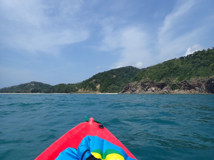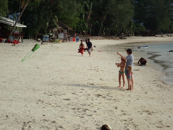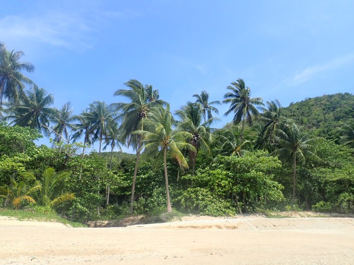 Wir waren froh Badeschuhe angezogen zu haben. Denn in der Nachbarbucht gibt es keine Lagune wie bei uns am Salad Haad, sondern nur scharfe Steine bis zum Strand. Zuerst meinten wir total allein in der Bucht zu sein, bis Josephine einige Nudisten entdeckte (was in Thailand gegen die Kultur verstösst). Daher traten wir relativ zügig wieder den Rückweg an.