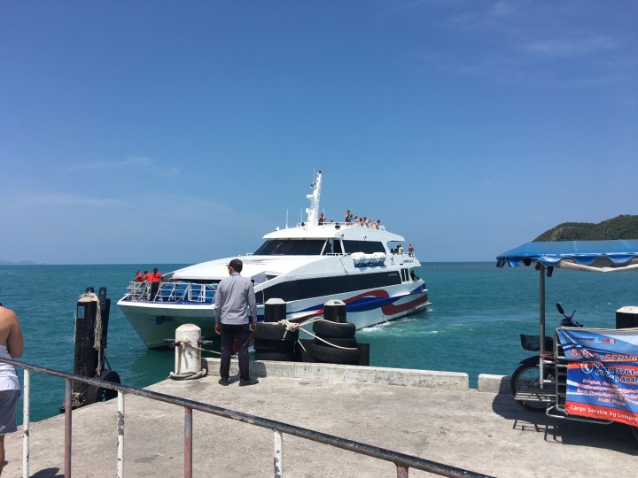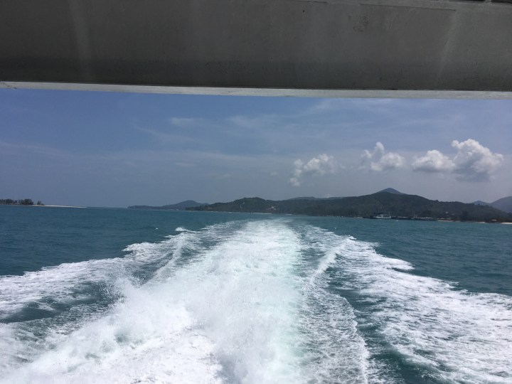 Um 10:00 war unser Taxi bereit, welches uns nach Tongsala zum Pier brachte. Zwei der Allround-Angestellten führen uns hin. Um 11:00 fuhr unser Highspeed Katamaran in Richtung Koh Samui.