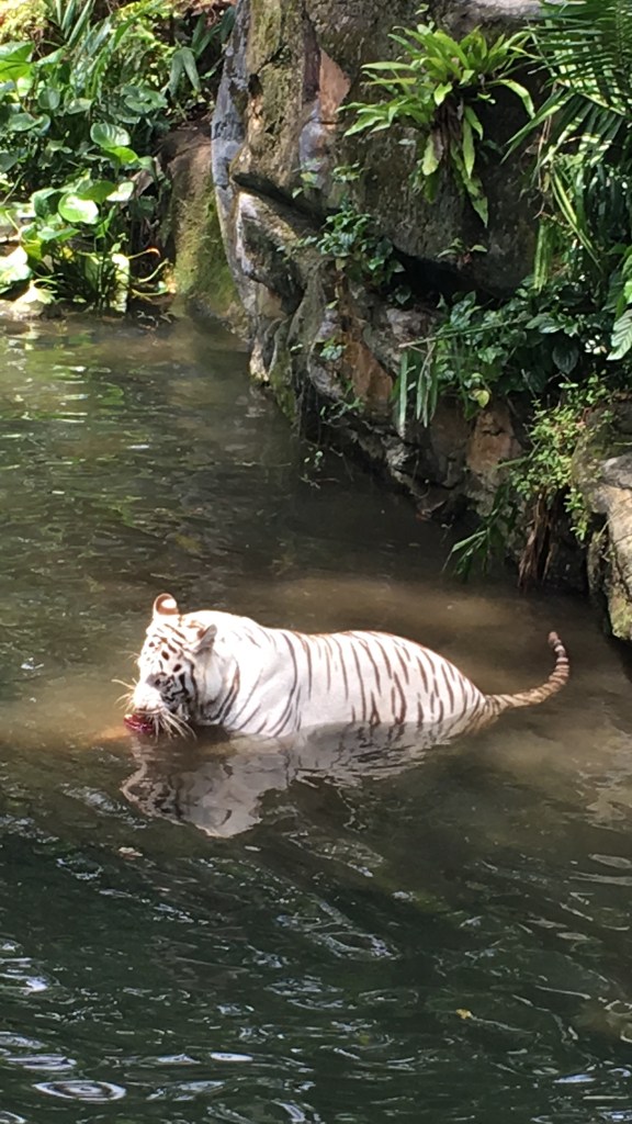 Ein Highlight war es die Weissen Nashörner mit Melonen zu füttern. Oder einem der beiden Bengalischen Tiger dabei zu zuschauen, wie er sich einen Snack aus dem Wasser holte. Weiter besuchten wir eine Show in der Regenwaldtiere vorgestellt wurden. Zu guter Letzt besuchten wir sogar noch eine Show mit Katzen und Hunden.