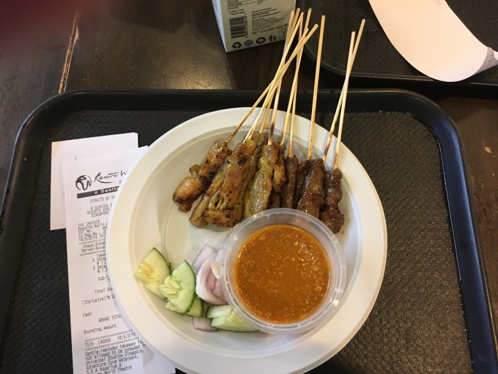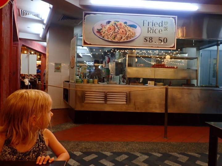 Am Abend assen wir in einer Malaysischen Foodstreet auf Sentosa: Fried Rice und Satayspiesse. Gioia meinte: „Ig nid gärn“ und ass den Rest des Picknickbrötchens vom Mittag.