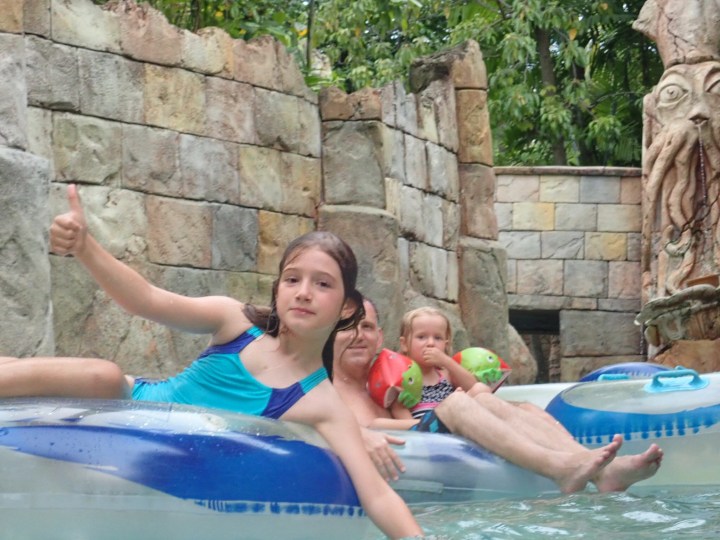 Nach Josephines Schule und Claudes Sport gingen wir heute wieder nach Sentosa Island. Heute war der Wasserpark dran. Da die Sentosa Bahn teuer im Vergleich zur Metro ist, lohnte sich heute sogar ein Taxi für uns 4.