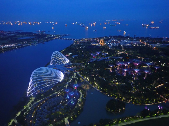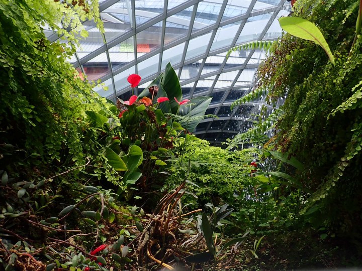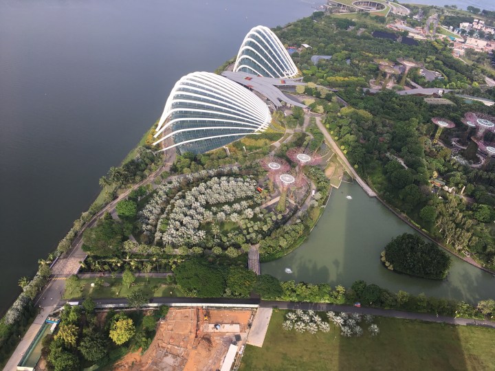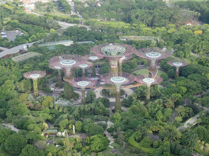 Von „Little India“ begaben wir uns per Metro zu den „Gardens by the Bay“. Dieses Viertel liegt direkt neben dem Bankenviertel und ist wie ein grosses Naherholungsgebiet rund um die neueren Wahrzeichen von Singapore (Marina Bay Sands mit Schiff auf dem Dach, künstliche Riesenbäume). Nach einem längeren Spaziergang quer durch das Naherholungsgebiet. Gingen wir uns den „Cloudforest“ und den „Flowerdome“ anschauen. Beides sind grosse Kuppen in den Blumen und Kakteengärten angelegt sind. Josephine war der Meinung, dass das Gebilde im „Cloudforest“ wohl früher ein Parkhaus war (mehr dazu dann in Josephines Videoblog #3).