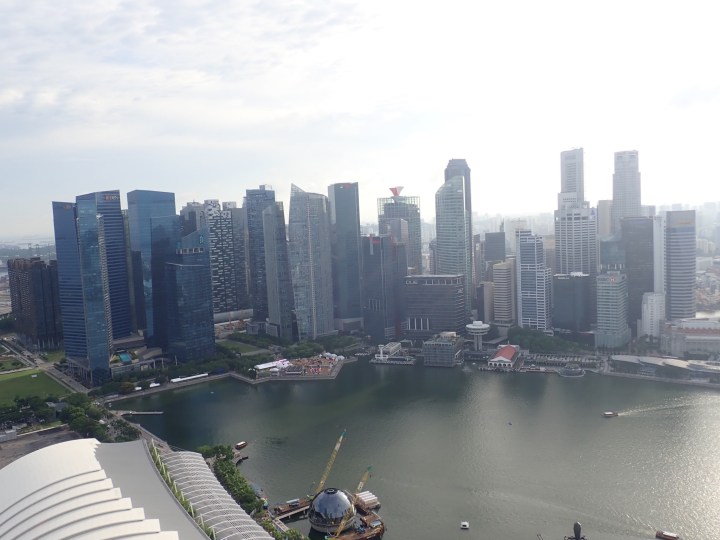 Bis dahin wussten die Modis noch nichts von meinem Plan als Family auf das Marina Bay Sands Schiff hochzugehen. Bevor wir jedoch dieses Abendteuer in Angriff nehmen konnten, wurden noch die „indischen“ Rüebli und Gurken verzehrt. So begaben wir uns mit einem sehr leichten Snack im Bauch in Richtung 56 Etage um die Aussicht auf die Skyline von Singapore zu geniessen. Auf der Aussichtsplattform fühlte man sich gerade wieder etwas wie im indischen Viertel, da es von indischen Touristen nur so wimmelte.