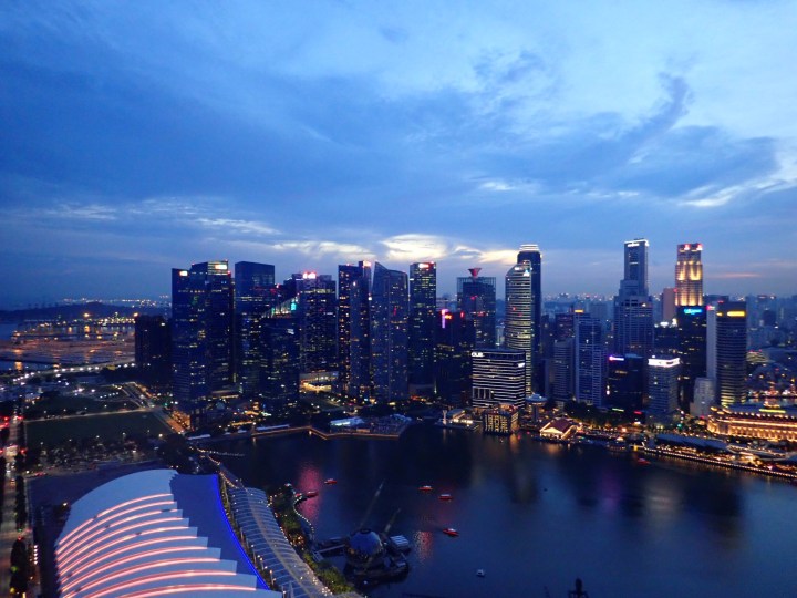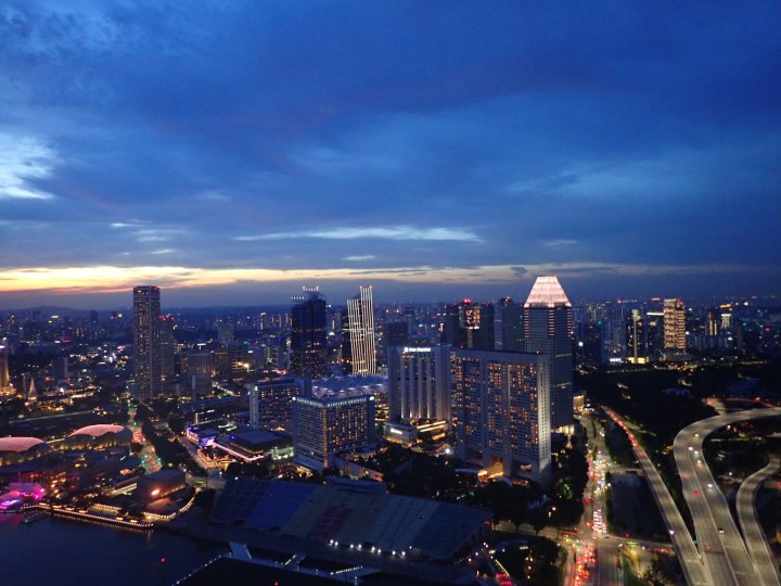 Hier erholten wir uns etwas von unserem Tagesprogramm und warteten bis die Sonne langsam hinter dem Horizont verschwand und Singapore by Night sichtbar wurde.