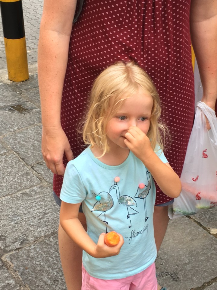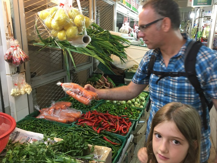 Anschliessend ging es mit der Metro nach „Little India“ wo wir auf dem indischen Markt endlich Rüebli und Gurken kaufen konnten (Annina hielt schon lange Ausschau). Gioia hielt sich auf Grund des ungewohnten Geruchs schonmal die Nase zu. Nach dem Markt gelangten wir in ein indisches Viertel wo es verschiedene Coiffeur- und Barbiersalons hatte. Diese Gelegenheit nutze ich um meine Haar und meine Bart schneiden zu lassen. Fazit: Haare schneiden – gut indisch; Rasur – einige Schnittwunden.