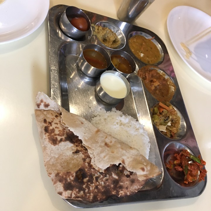 Nach dem Coiffeur gingen wir richtig indisch Essen. Ausnahmsweise durften alle mit den Fingern essen. Wir hatten einen super Kellner, der uns zum Glück mit viel Geduld in die indischen Tischmanieren einführte. Ich hatte den Eindruck, dass er sogar Freude daran hatte, dass Touristen nicht nur essen sondern „richtig indisch“ essen wollten.