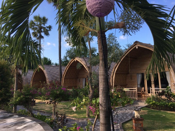 Unser Zweizimmerbungalow ist ein balineisches Holzhaus mit Openair-Bad. Pemuteran ist bekannt für seine vielen Moscheen, so werden wir fast dauerbeschallt von Muezins ohne Gesangsausbildung. Zwischendurch scheint es als wäre es ein Wettbewerb, wer langanhaltender falsche Töne singen kann. Gemäss Amerikaner, welche wir im Pool getroffen haben, geht der Gesang am Morgen um 05:00 los. Mal schauen, vielleicht greifen wir dann auf Kopfhörer und klassische Musik zurück.