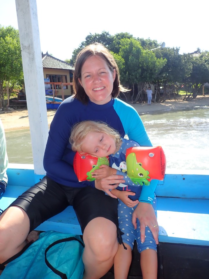 Nach zweimal rund 1h Schnorcheln waren wir müde und bereit für die Rückfahrt. Gioia genoss den Wellengang und schlief auf Anninas Schoss ein. So kamen wir im Verlauf des Nachmittags glücklich, voller Eindrücke und Müde wieder im Hotel an.