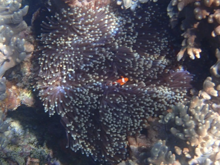 Die Unterwasserwelt war in einem recht guten Zustand. Wir sahen Anemonen, Fächerkorallen und verschiedene Arten von kleinen und grossen Fischen.