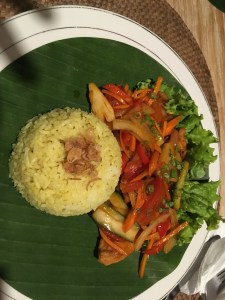 Heute sind wir mit unserem Fahrer von Permuteran nach Ubud gefahren. Dieser ist schon kurz nach 6 Uhr auf der Südseite Balis losgefahren, um uns nach 3,5 Stunden Fahrt um ca. 11 Uhr auf der Nordseite abzuholen und dann wieder 3,5 Stunden zurück in den Süden zu fahren. Wir nahmen Abschied von den freundlichen Kellnern.