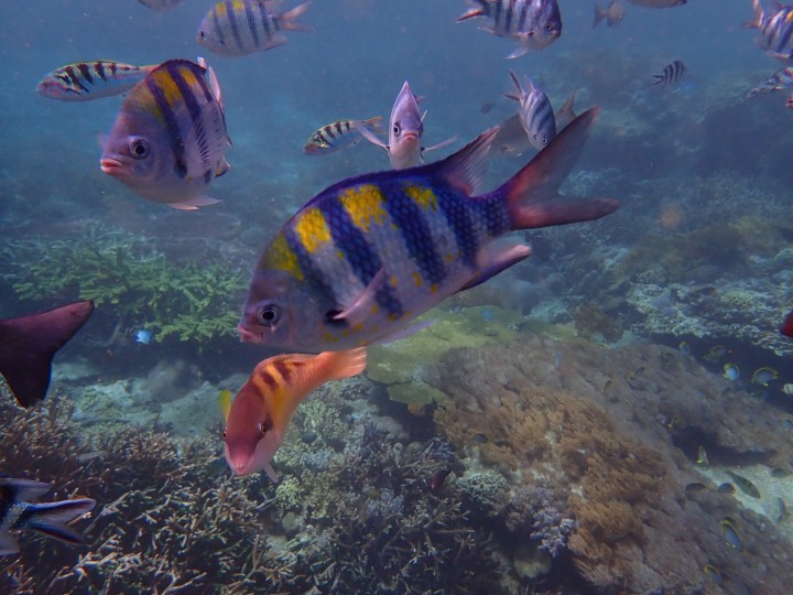 Unten: Neugierige Majorsfische (Seargent), immer an vorderster Front.