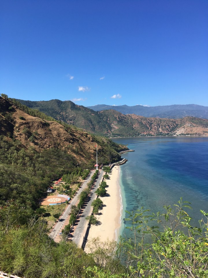 Heute Morgen stand ein Ausflug zur Christo Rei-Statue und ein anschliessender Strandbesuch in der Nähe auf dem Programm. So machten wir uns kurz vor 10:00 auf den Weg. Die Statue auf einem Hügel am Meer liegt ca. 30 Minuten von unserem aktuellen Zuhause entfernt. Die Statue wurde von den indonesischen Besatzern errichtet um sich bei der katholischen Bevölkerung Ost-Timors beliebt zu machen (siehe https://de.m.wikipedia.org/wiki/Cristo_Rei_(Dili)).
