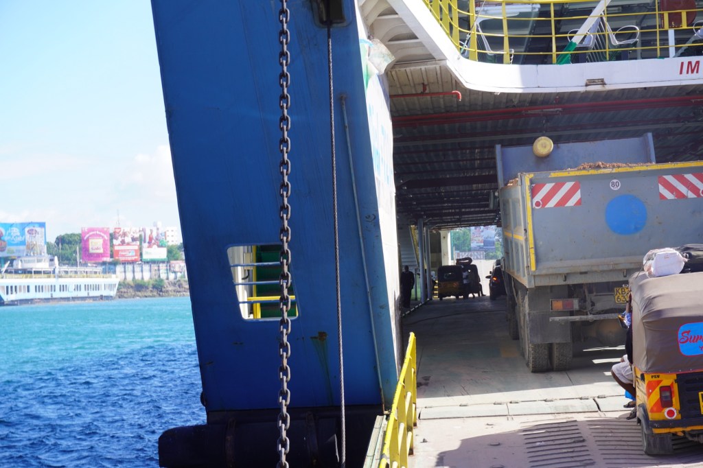 Angekommen in Mombasa wurden wir bereits von den organisierten Taxichauffeuren erwartet. Dies bringen uns südlich von Mombasa an die Diani Beach. Um dorthin zu gelangen ging es durch verschiedene Quartiere von Mombasa und auf die Fähre, die einzige Möglichkeit den Kanal zu überqueren. Rund 300‘000 Leute queren den Kanal auf diese Weise täglich.