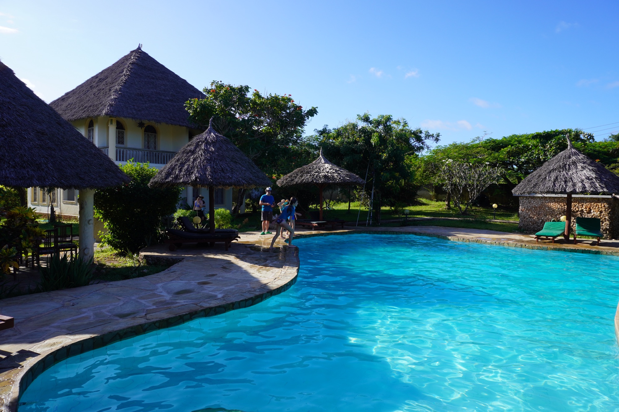Es dauert nicht lange und der Pool wurde von den Kindern in Beschlag genommen. Zum Glück sind wir hier nebst einem amerikanischen Paar die einzigen Gäste.