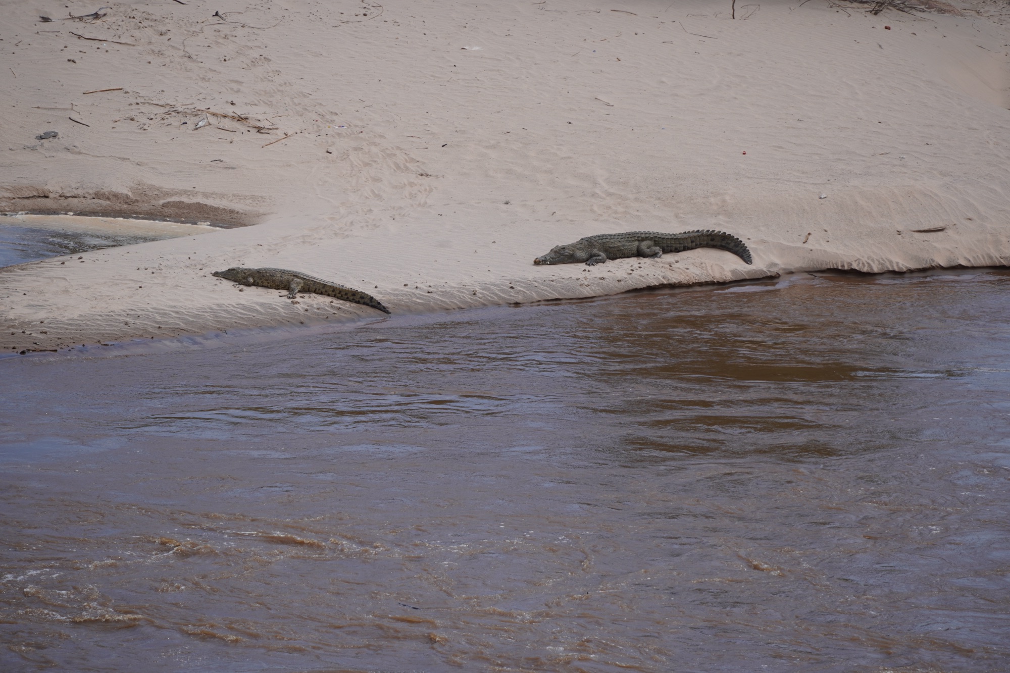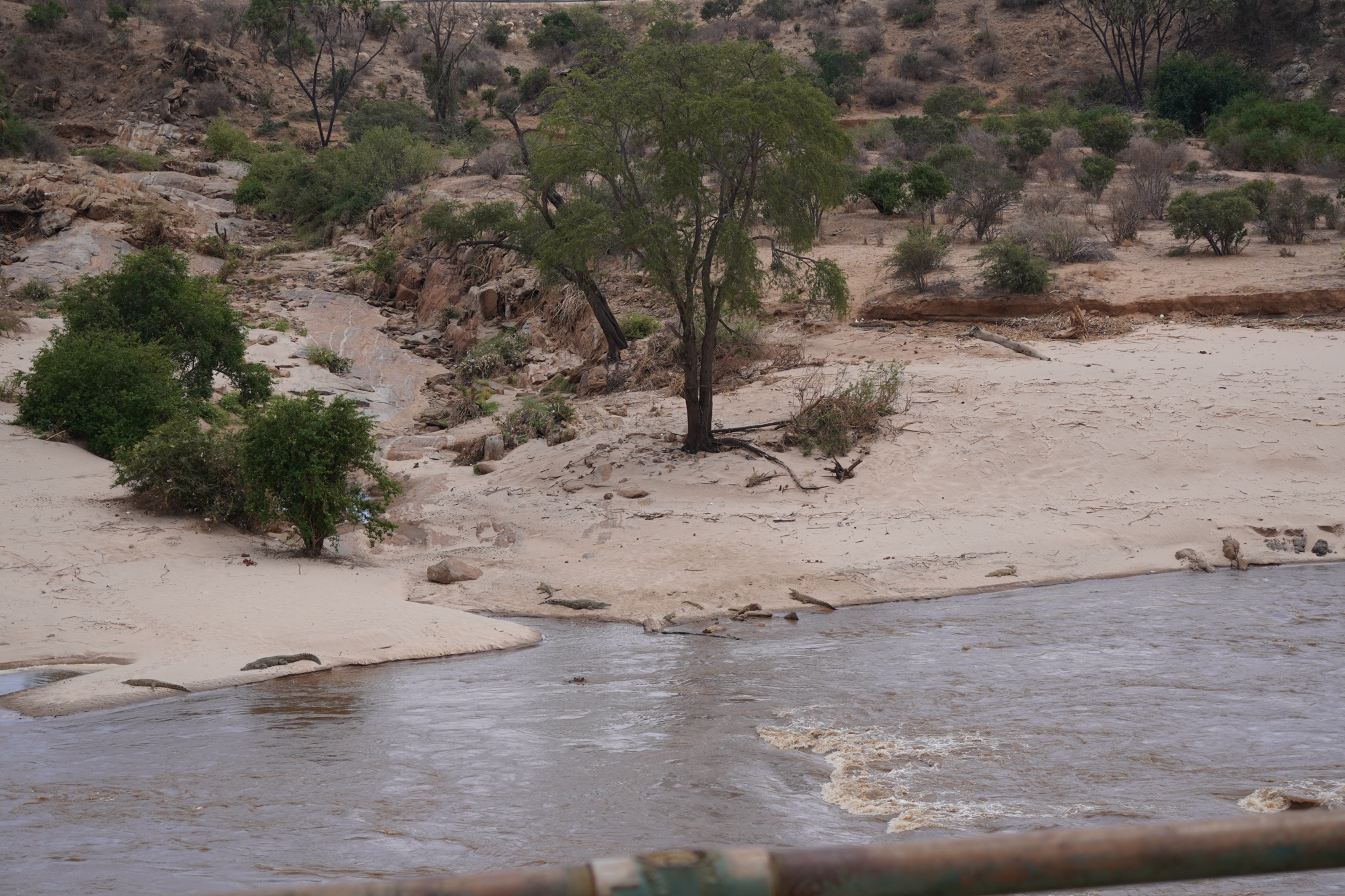 Erstaunlicherweise waren die Landschaft wider erwarten trotz des grossen Flusslaufs relativ karg. Nach 1-2 Stunden Fahrt, bekamen wir endlich ein Nilpferd und zahlreiche Krokodile in freier Wildbahn zu Gesicht.