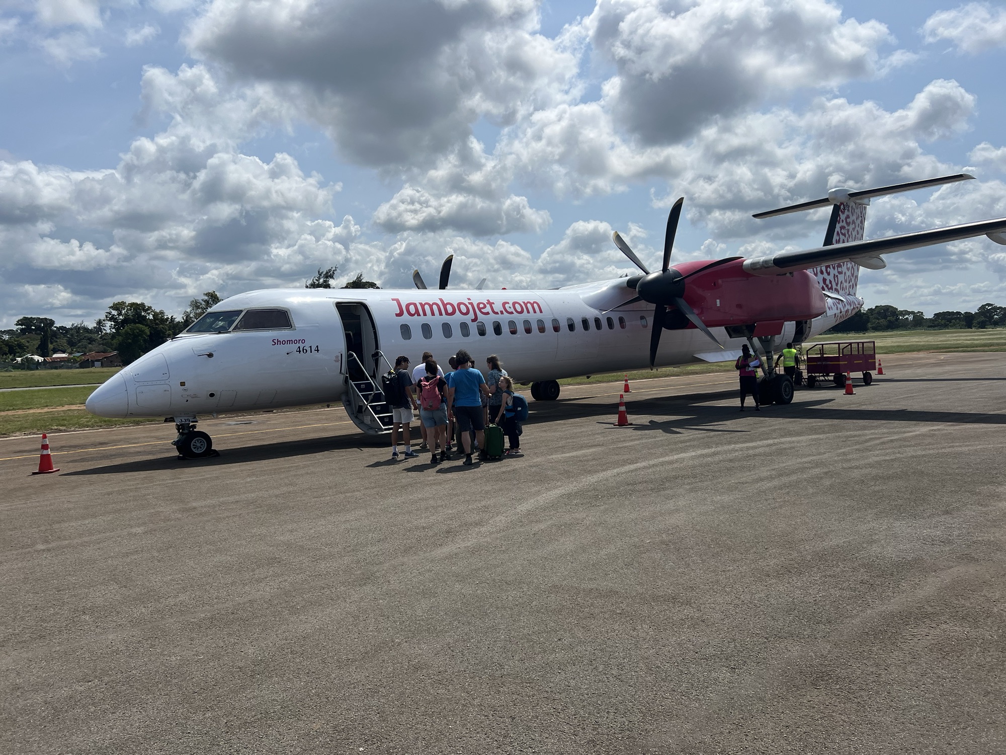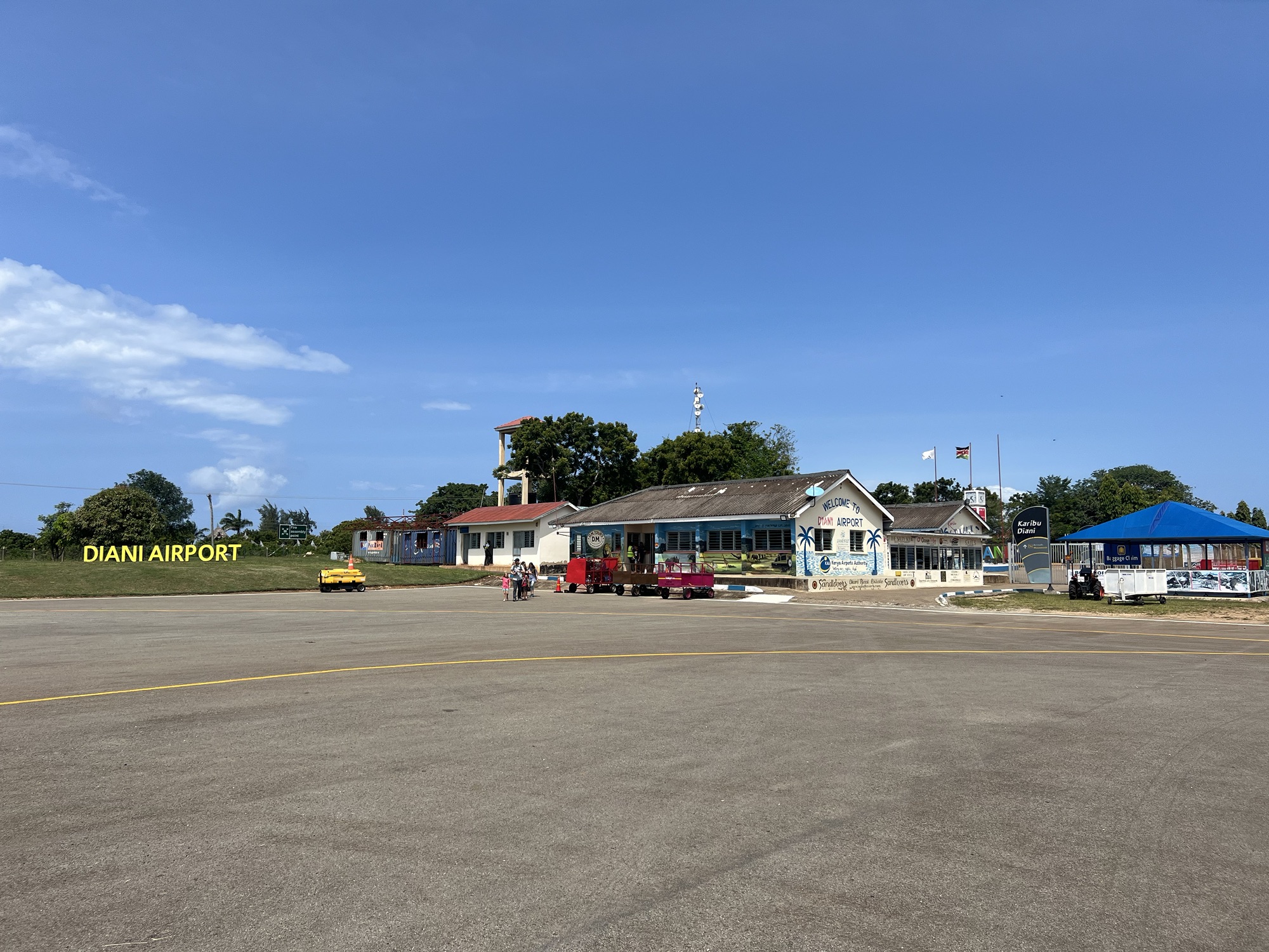 Mit einiger Verspätung so ca. um 11:30 trafen unsere Taxis ein, welche uns an den nahegelegenen Airstrip fuhren. Zugegebenermassen wurden wir langsam etwas nervös, da unser Flug auf 12:30 terminiert war. Als wir den Flughafen von nahem sahen, wussten wir wieso alle so ruhig unterwegs waren. Belpmoos ist im Vergleich ein Riesenflughafen.
