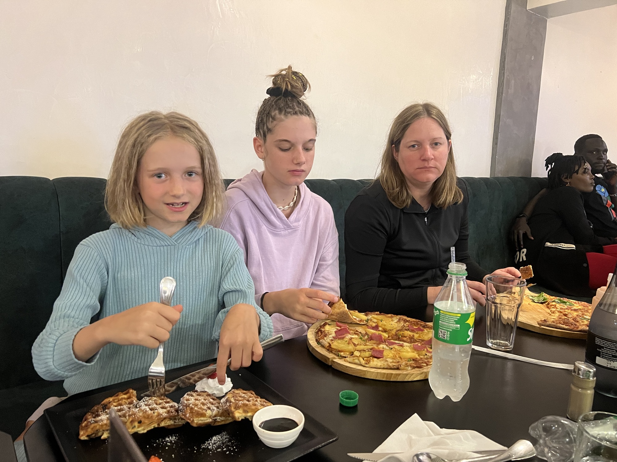 Da dies unser letzter Abend zusammen mit Jonas und seiner Familie war, gingen wir in ein für kenianische Verhältnisse gutes Restaurant. Wir waren erstaunt wieviel Leute am Abend unterwegs waren und zugegebenermassen auch etwas überfordert.
