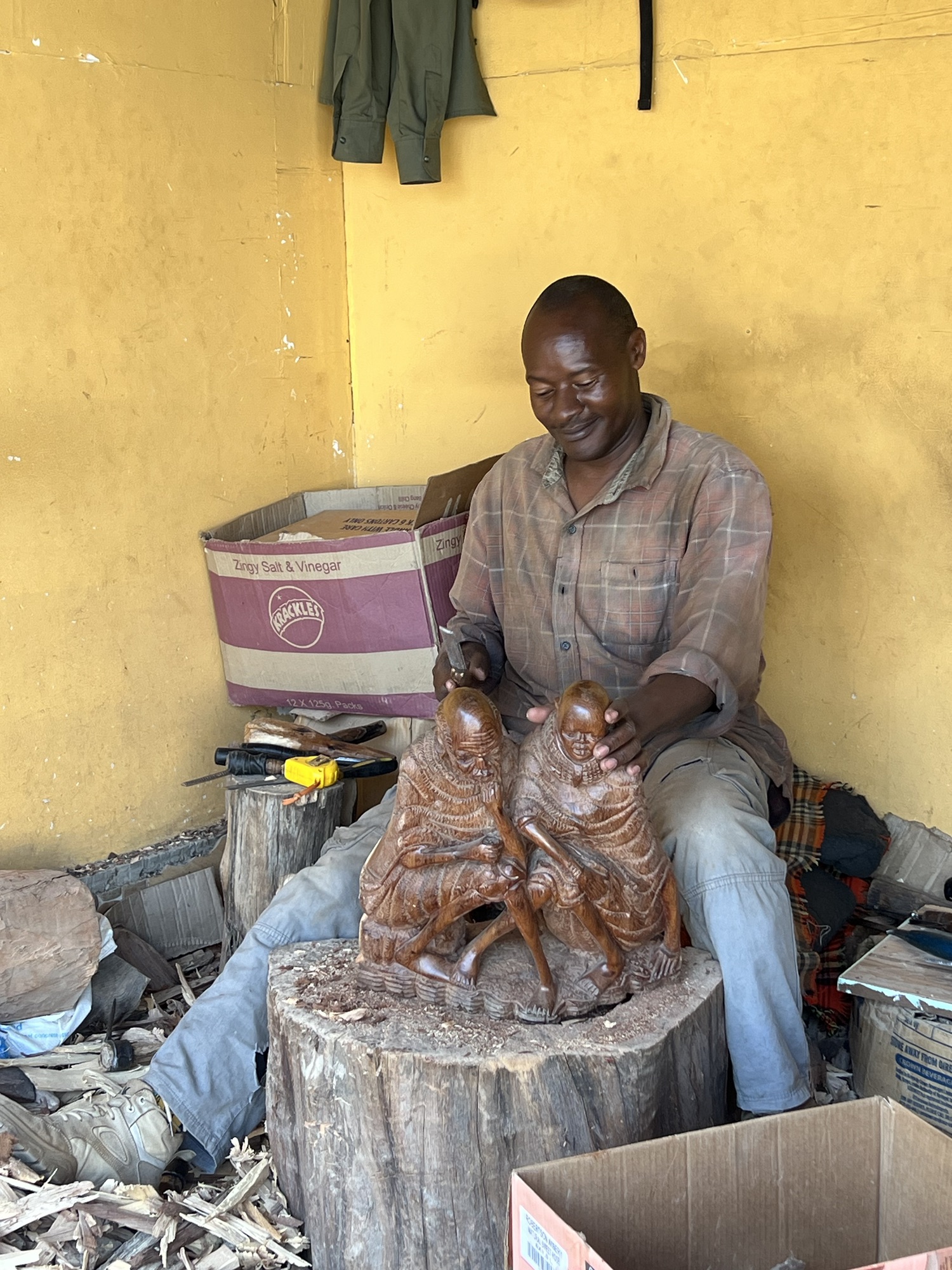 Heute reisten wir von Nakuru ca. 2h mit unserem Guide nach Lake Naivasha. Unterwegs machten wir noch einen kurzen Halt um für Josephine ein aus Holz geschnitztes Nashorn zu kaufen. Dort verwickelte ich mich noch in eine Unterhaltung mit den Holzschnitzern und zeigte ihnen die Brienzer-Holzschnitzkunst was sie ziemlich beeindruckte, obwohl ich der Meinung war, dass sie wunderschöne Dinge schnitzten.