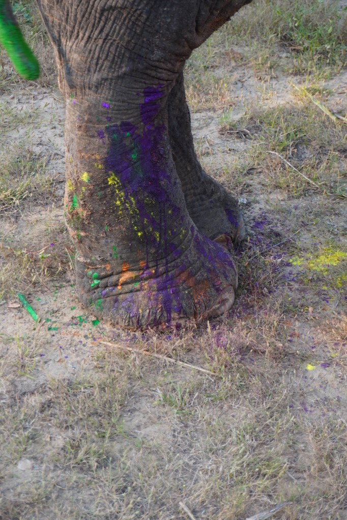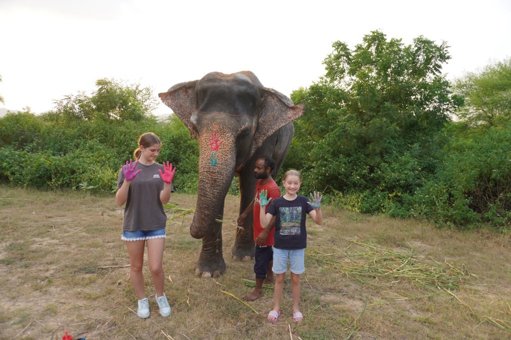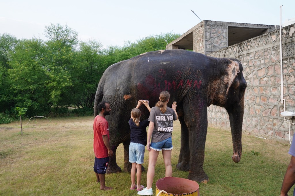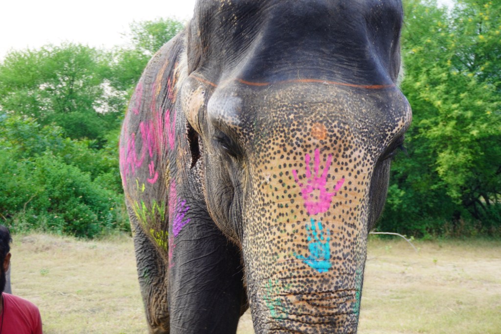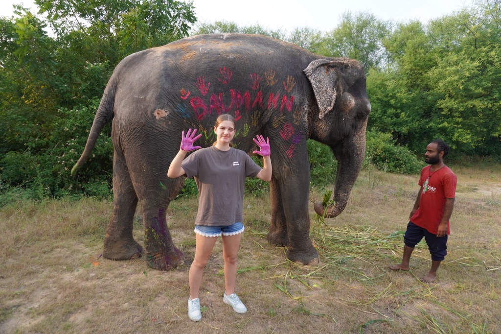 Nach einem ersten Kennenlernen, durften wir als Touristenattraktion à la India den Elefanten noch bunt bemalen. So wurde aus Lakshmi kurzerhand Lakshmi Baumann. So hatten wir für einen kurzen Moment einen Elefanten als Haustier (checked).