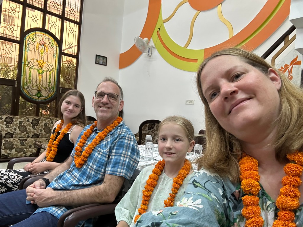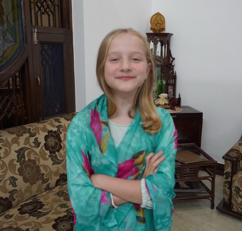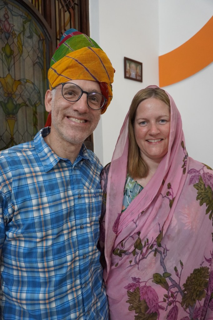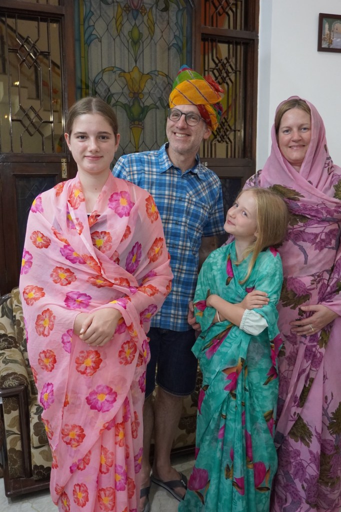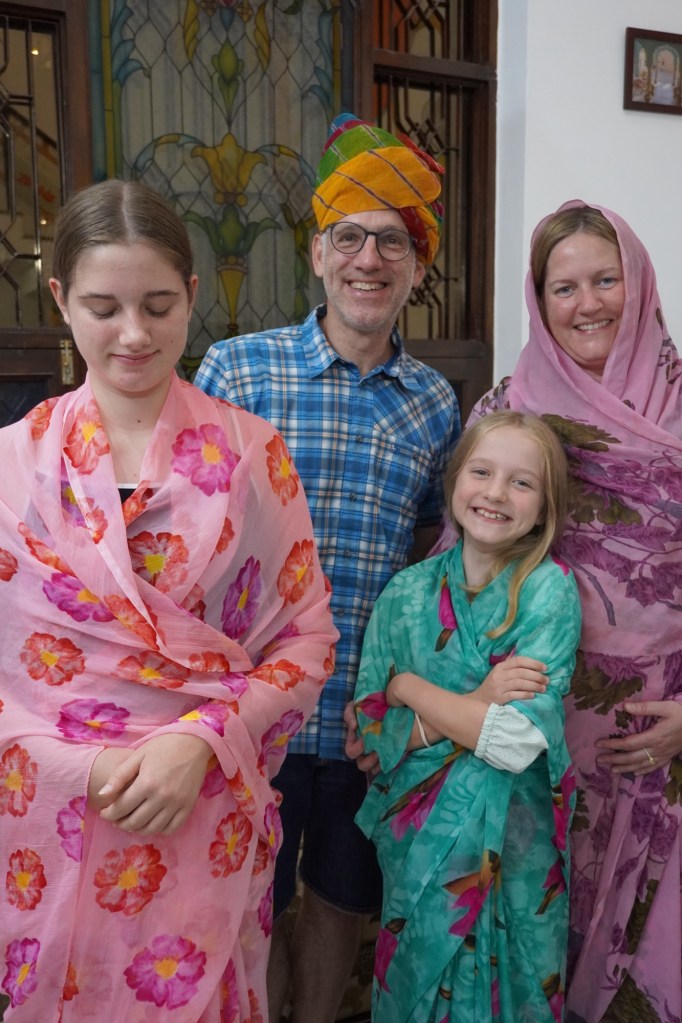 Vor dem Abschied wurden noch alle Frauen in Tüchern eingekleidet und mir ein Maharaja-Hut aufgesetzt. Gioia konnte sich vor Lachen fast nicht mehr erholen.