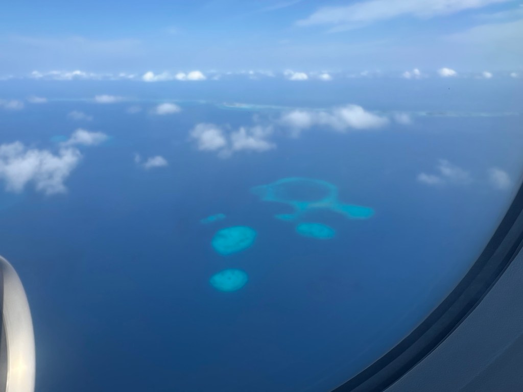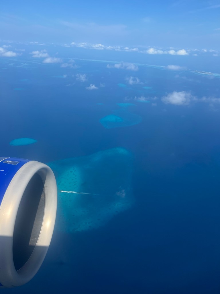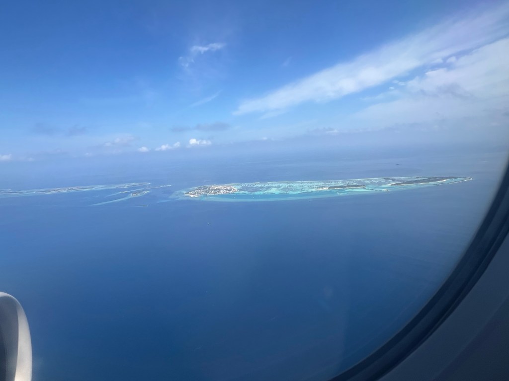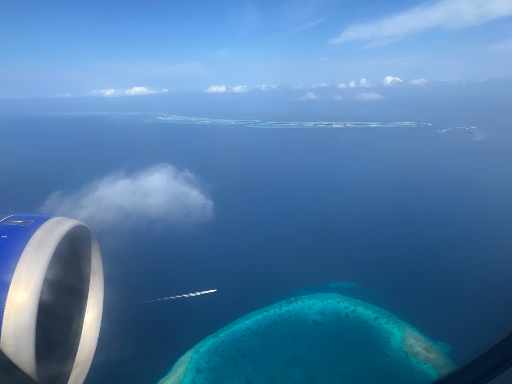 Mit Ärger im Bauch über meine Unachtsamkeit und die indische Bürokratie flogen wir über wunderschöne Inseln der Hauptinsel Malé entgegen.