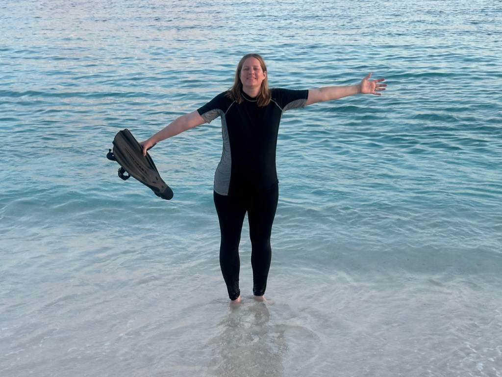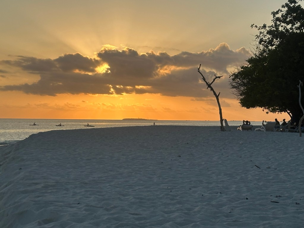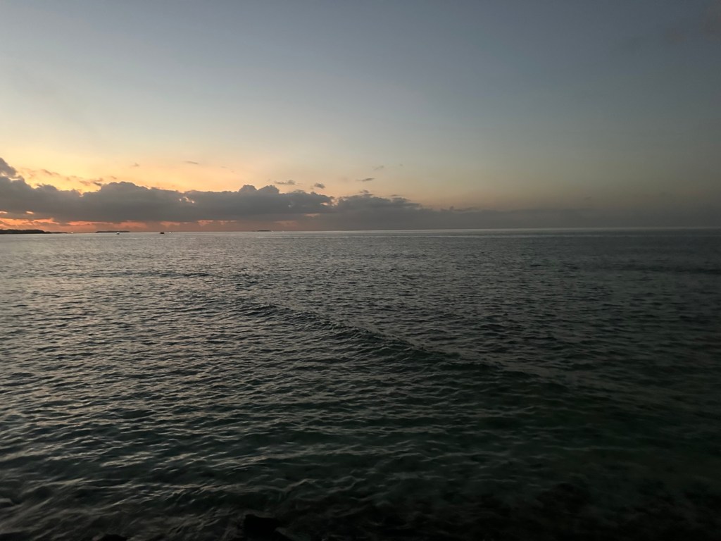 Nach einem einfachen Mittagessen und einer Siesta machten wir uns kurz vor der Eindämmerung nochmals auf an den Strand, um die schöne Stimmung zu geniessen. Annina zog es ans Riff wo sie sogar einer Schildkröte und einem Riffhai begegnete.