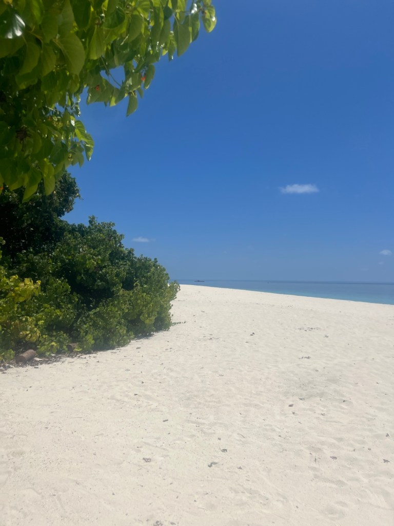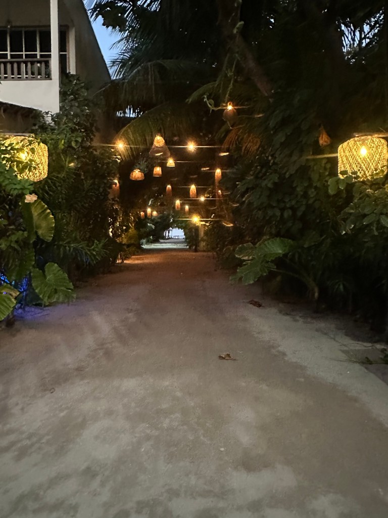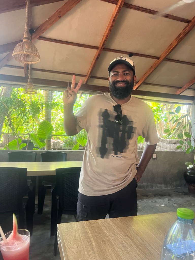 Die Fahrt dauerte etwas mehr als 2h und flog im Nu vorbei, da wir alle schliefen. Am neu gebauten Hafen wurden wir bereits unserem Gastgeber Ihu erwartet und freundlich in Empfang genommen. Bei einem leckeren Wassermelone-Drink erklärte uns Ihu alles mögliche zur Insel und dem Guesthouse. Auf Kamandhoo leben vorwiegend Einheimische. Aktuell gibt es nur wenig Tourismus auf der Inseln. Also uns erwartet sehr reales Inselleben inkl. Gebetsrufe von der nahegelegenen Moschee.